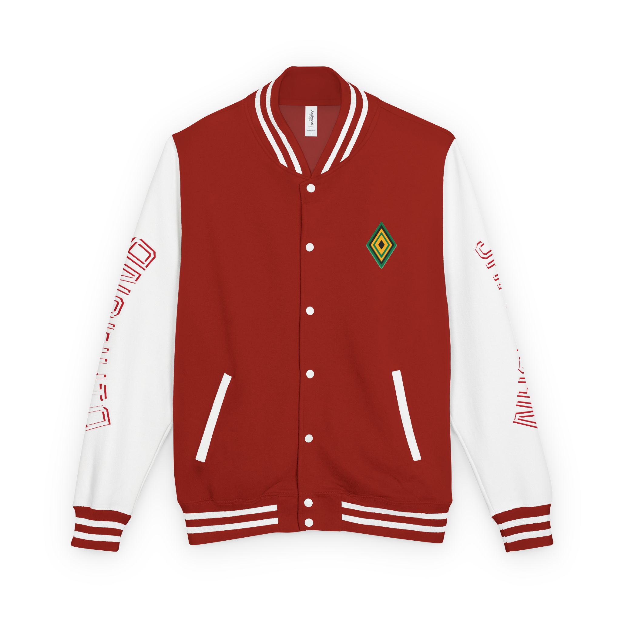 Be the first to review “Jamaicanback Script Sleeve Letterman Jacket | Red White Varsity Style”