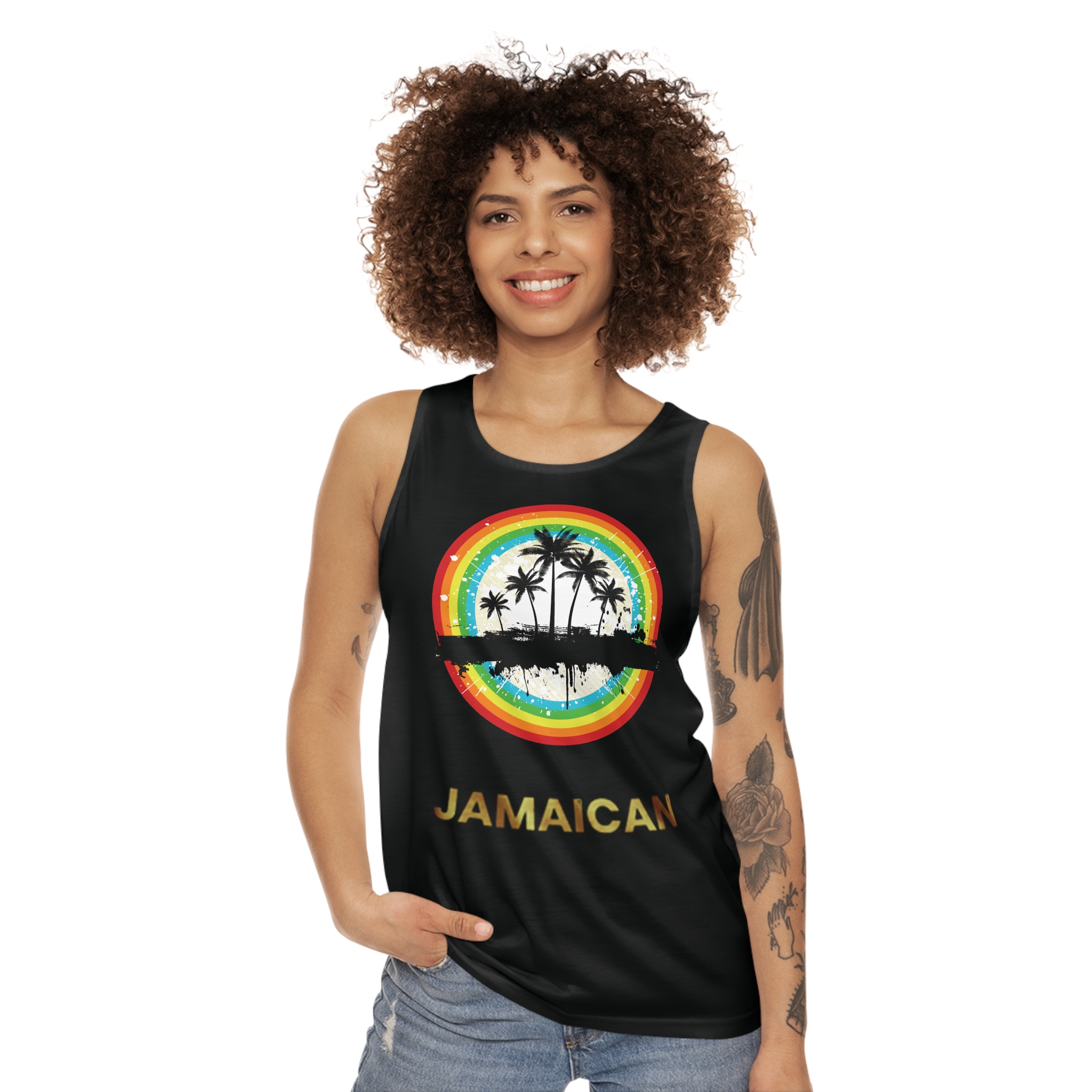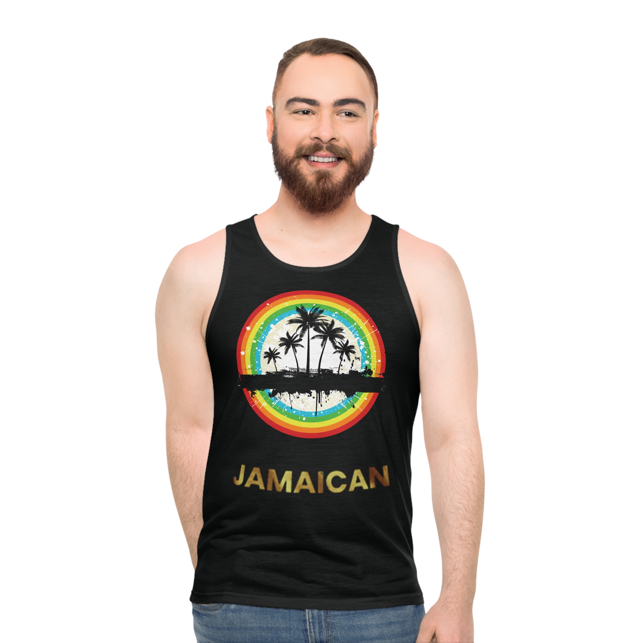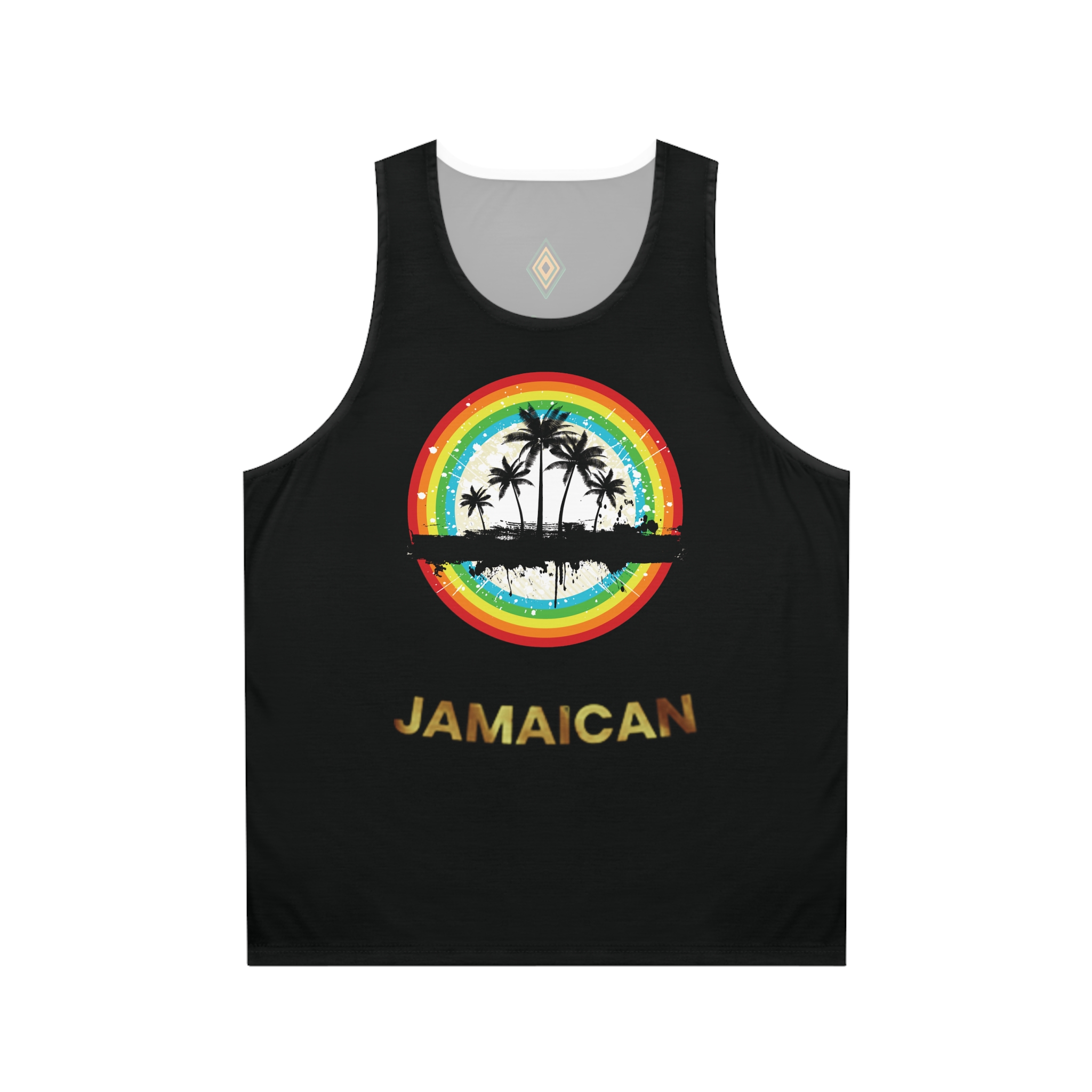 A lightweight tank that carries the heat of a sunlit shoreline into everyday wear. The breathable, quick-drying recycled polyester keeps you cool while a vivid circular sunset—rainbow rings framing silhouetted palms and a distant shoreline—brings warm, nostalgic island energy to the front. It sits with a relaxed, regular fit and reinforced seams so it holds its shape through summer hikes, beach bonfires, or afternoons on a crowded boardwalk. Wear it layered under an open shirt or solo when the day calls for easy movement and bright, carefree color.